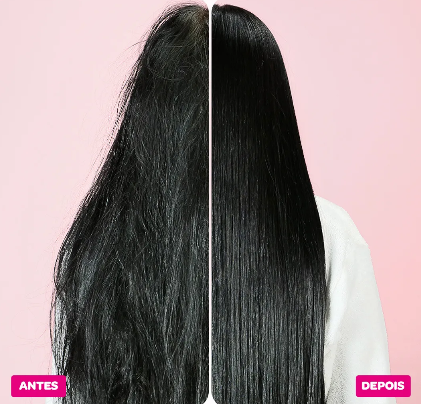 - Cabelos extremamente alinhados, com brilho, volume reduzido, sem frizz, sedosos, super leves e macios.